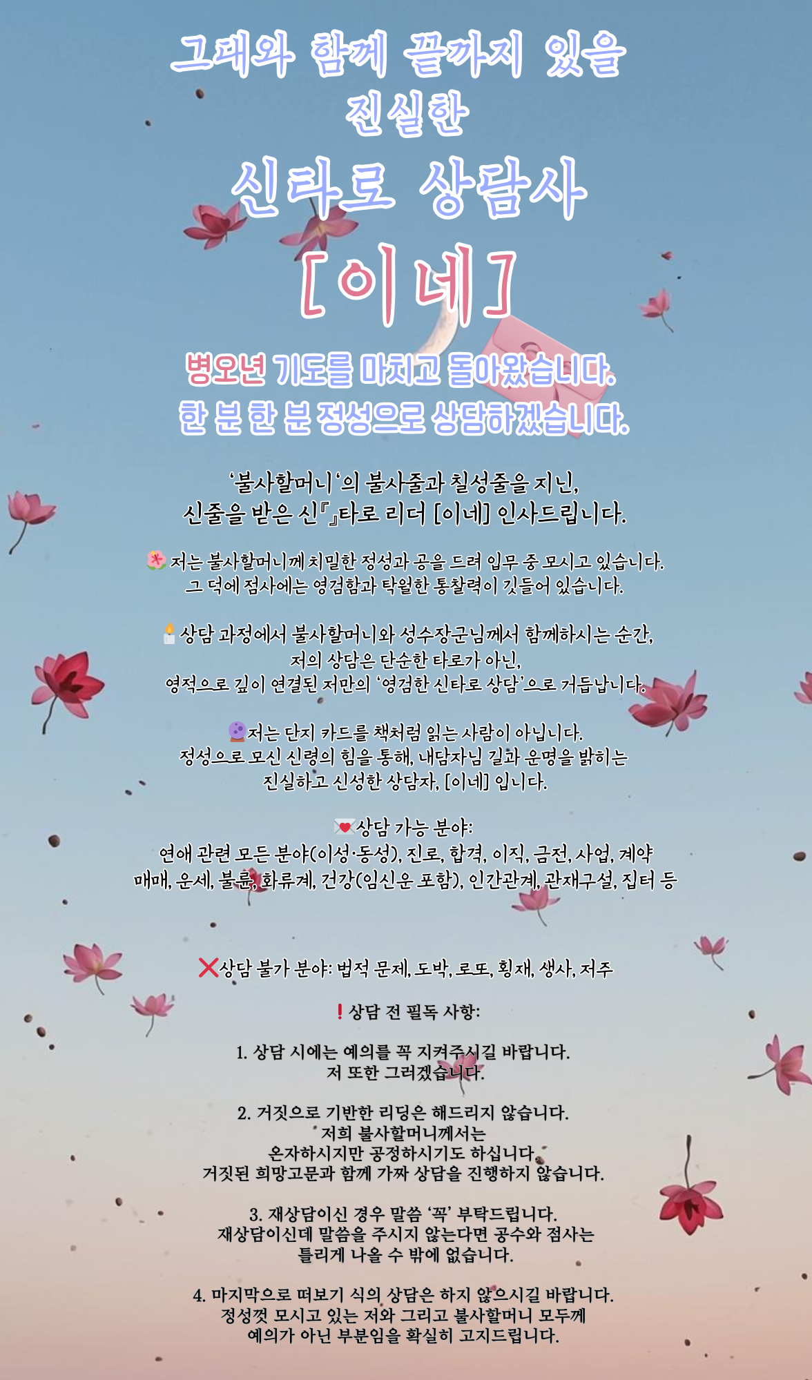 달빛을 전하고 싶은 신타로 상담사 '이네'입니다.